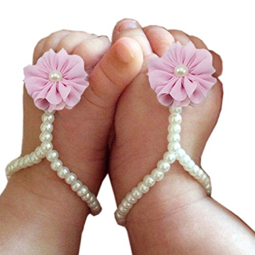 Malloom® 1 Paar Perle Chiffon Barfuß Kleinkind Fuß Blume Strand Sandalen (rosa)