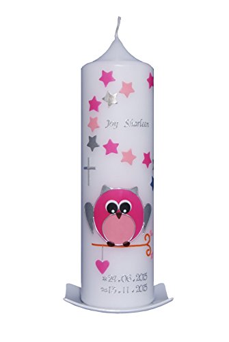 Taufkerze Puschel Eule mit Sternen 25x7cm (fuchsia) mit Karton, wird NUR auf Kundenwunsch für Sie gefertigt. Bei uns bekommen sie keine Massenware. Jede Kerze für sich, ist ein Unikat.