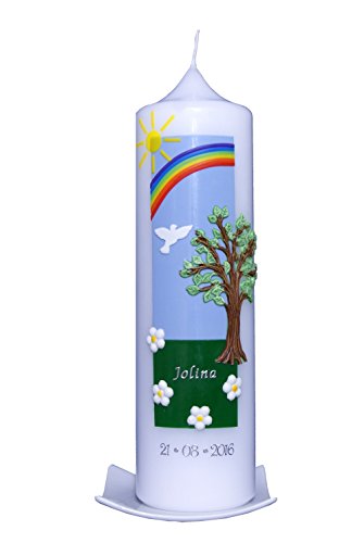 Verkauf Taufkerze Baum mit Regenbogen (25x7cm) mit Karton, wird NUR auf Kundenwunsch für Sie gefertigt. Bei uns bekommen sie keine Massenware. Jede Kerze für sich, ist ein Unikat.