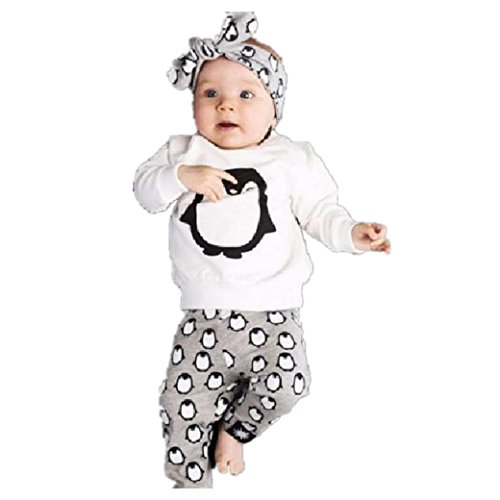 bieten Baby kinder Junge Mädchen Mode Pinguin design Set Langarm T Shirt + Hose Baumwolle Langarm Tops Kinderbekleidung Outfits Set (70)