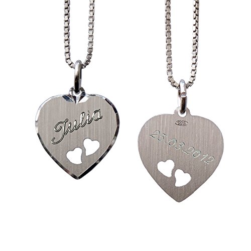 GravUp: 925 Sterling Silber Anhänger Herz mit Gravur eines Vornames auf der Vorderseite + 1 Datum auf der Rückseite. Gravur in Schreibschrift oder Druckschrift. +925 Sterling Silber Halskette wählbar 32, 36, 38 oder 42 cmSie erhalten innerhalb von maximal 24 Std. nach dem Kauf eine E-mail, in der Sie uns die nötigen Gravur-Angaben mitteilen können!!!